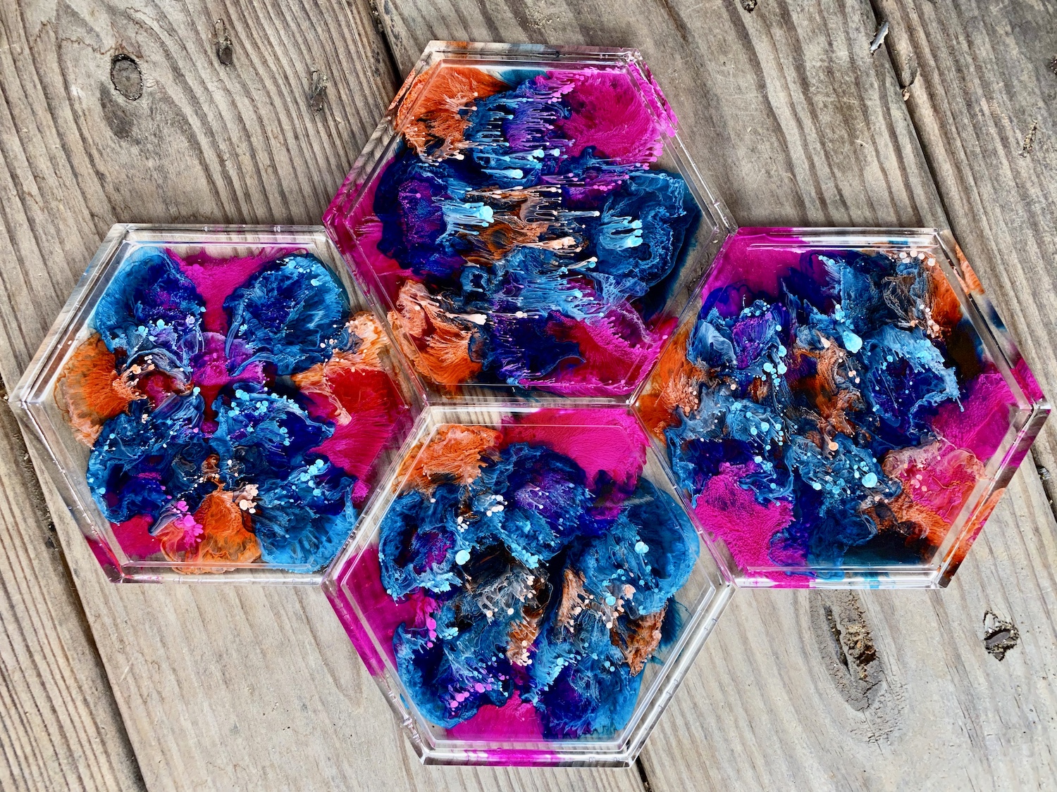 Last month I hosted my first party of 2020 and we made resin coasters. No one that attended had ever worked with resin before (including me!), but as always, everyone’s vision came to life by the end of the night and the coasters turned out better than I could have hoped.